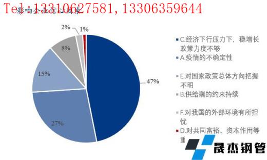 本次調(diào)研樣本企業(yè)認為影響企業(yè)信心的因素如下表:47%認為經(jīng)濟下行壓力大,穩(wěn)增長政策力度不夠;27%認為疫情不確定性;15%認為對國家政策總體方向把握不明;8%認為是供給端的約束持續(xù),另有3%擔憂外部環(huán)境和對重大問題認識不清。