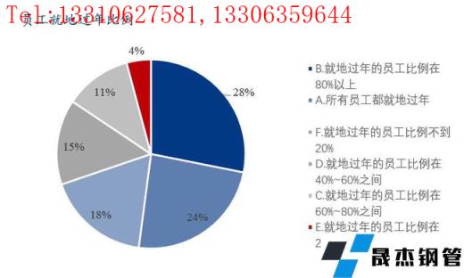 本次調(diào)研樣本企業(yè)中所有員工均就地過年的占比24%,就地過年員工比例在80%以上的占比28%,就地過年員工比例在60%-80%的占比11%,就地過年員工比例在40%-60%的占比15%,就地過年員工比例40%以下的占比22%。