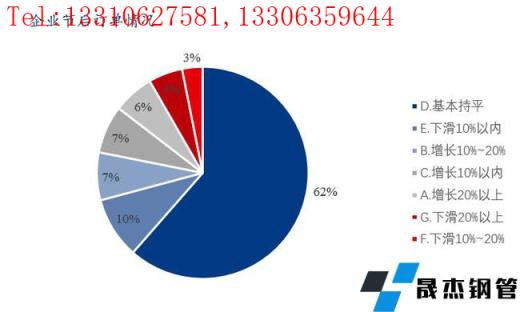 3、訂單方面穩(wěn)中有漲。與去年同期相比,企業(yè)的訂單有增長的占比20%,其中增長10%以內(nèi)的占比7%,增長10%以上的占比13%;基本持平的占比62%;當(dāng)前所在企業(yè)的訂單狀況有所下滑的占比18%。
