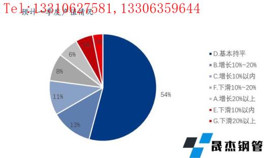 本次調(diào)研樣本企業(yè)中與去年同期相比,預(yù)計企業(yè)一季度的產(chǎn)值有所增長的占比30%,其中增長10%以上的和增長10%以內(nèi)的分別占比19%和11%;與去年同期相比,預(yù)計企業(yè)一季度的產(chǎn)值基本持平的占比54%;與去年同期相比,預(yù)計企業(yè)一季度的產(chǎn)值有所下滑的占比16%。
