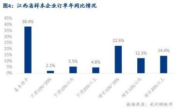 5、調(diào)研企業(yè)庫存情況發(fā)現(xiàn):今年企業(yè)訂單狀況較去年節(jié)后同期相比有明顯好轉(zhuǎn),企業(yè)訂單較去年持平和增加的樣本比例高達(dá)87.7%,僅12.3%的樣本企業(yè)訂單狀況較去年有所下滑,其中訂單數(shù)下滑20%以上的企業(yè)占比3.9%。出口方面,40.9%的企業(yè)出口訂單量較去年同期比基本持平,43.6%的企業(yè)出口訂單量同比有增長,15.5%的企業(yè)出口訂單同比有下降,主要是受全球疫情,以及中美貿(mào)易摩擦的影響。