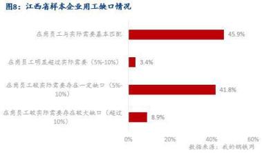 據(jù)調(diào)研,春節(jié)期間江西省樣本企業(yè)所有員工都放假停工的企業(yè)占調(diào)研樣本比例為52.7%,放假停工的員工比例不到20%的企業(yè)僅占比5.5%;放假停工的員工比例在60%以上的企業(yè)樣本占比達(dá)到89%。