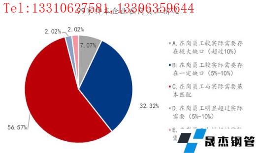 從圖21上看,對(duì)比實(shí)際經(jīng)營(yíng)需要,目前企業(yè)在崗員工超過(guò)實(shí)際需要5%-10%及以上的占比4.04%,與實(shí)際需要基本匹配的占比為56.67%,與實(shí)際需要存在一定缺口在5%-10%及以上的占比為39.39%。