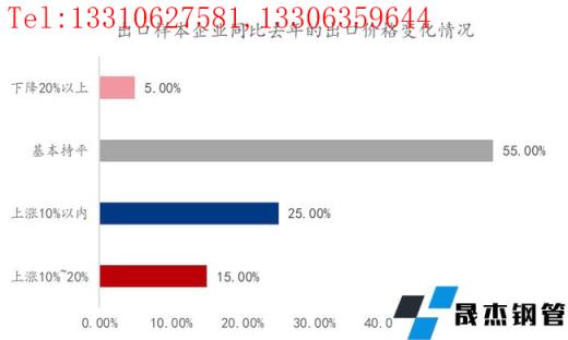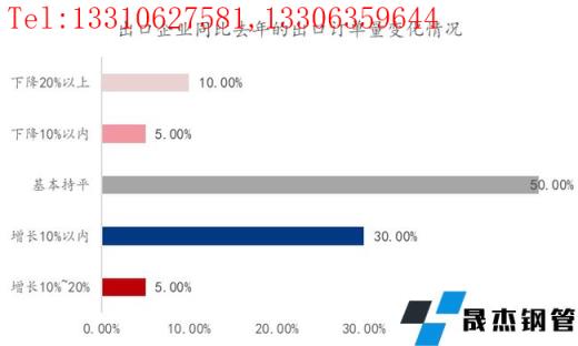 從圖26上看,20.20%的出口企業(yè)中,出口價(jià)格呈現(xiàn)不同程度上漲的企業(yè)占比為40%,基本持平的企業(yè)占比為55%,呈現(xiàn)不同程度下降的企業(yè)占比為5%。