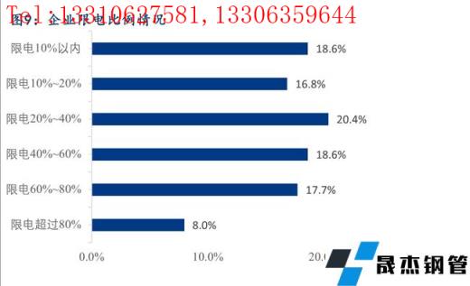 據(jù)調研,22.0%的樣本企業(yè)明確表示目前存在限電的情況,限電的比例較為平均,35.4%的樣本企業(yè)限電比例在20%以內(nèi),38.9%的樣本企業(yè)限電比例在20%-60%,25.7%的樣本企業(yè)限電比例在60%以上。