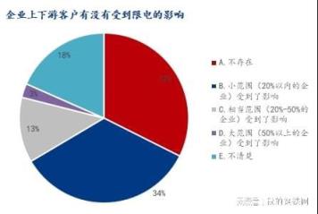 關于企業(yè)的上下游客戶有沒有受到限電的影響,參與調研企業(yè)中表示不存在占比32.37%,小范圍(20%以內的企業(yè))受到了影響占比34.15%,相當范圍(20%-50%的企業(yè))受到了影響占比12.42%,大范圍(50%以上的企業(yè))受到了影響占比2.66%,不清楚占比18.40%。可見還是有相當一部分企業(yè)受到了限電影響。