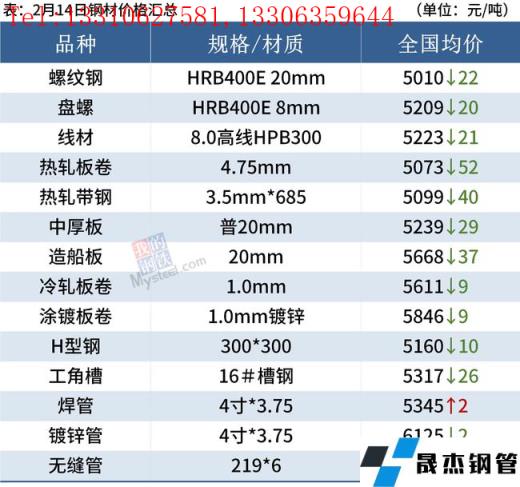 建筑厚壁無縫鋼管:2月14日,全國31個(gè)主要城市20mm三級抗震螺紋鋼均價(jià)5010元/噸,較上個(gè)交易日下跌22元/噸。終端陸續(xù)開工,采購量較少,投機(jī)性需求寥寥無幾,全天成交表現(xiàn)較差。短期來看,受原料端拖累,期螺走弱,帶動(dòng)市場避險(xiǎn)情緒升溫,市場套現(xiàn)需求增加,不過整體需求偏弱。預(yù)計(jì)15日國內(nèi)建筑厚壁無縫鋼管價(jià)格或?qū)⒗^續(xù)趨弱為主。