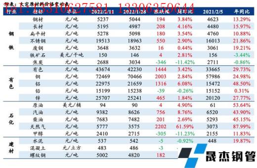 免責(zé)聲明:本網(wǎng)站(山東聊城晟杰無(wú)縫鋼管廠m.abagaf.com)刊載的“周報(bào):大宗原材料價(jià)格周報(bào)(2.07-2.11)”等均源于網(wǎng)絡(luò),版權(quán)歸原作者所有,且僅代表原作者觀點(diǎn),本文所載信息僅供參考。轉(zhuǎn)載僅為學(xué)習(xí)與交流之目的,如無(wú)意中侵犯您的合法權(quán)益,請(qǐng)及時(shí)聯(lián)系刪除。本網(wǎng)站刊登此篇文章并不意味著本站贊同其觀點(diǎn)或證實(shí)其內(nèi)容的真實(shí)性,我們不對(duì)其科學(xué)性、嚴(yán)肅性等作任何形式的保證。如果侵犯了您的版權(quán),請(qǐng)盡快聯(lián)系我們予以撤銷,謝謝合作!