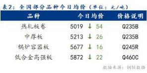 今日全國部分品種均價表現(xiàn)較弱,整體跌幅為16~54元/噸。