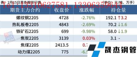 焦炭:2月15日,焦炭市場(chǎng)弱穩(wěn)運(yùn)行,唐山個(gè)別無(wú)縫厚壁鋼管廠家焦炭提降200元/噸,主流地區(qū)暫無(wú)回應(yīng),市場(chǎng)多觀望為主。本周焦企開(kāi)工率有所下降,焦企多保持低庫(kù)存運(yùn)行,考慮當(dāng)前焦化普遍處于虧損狀態(tài),且后續(xù)存在復(fù)產(chǎn)預(yù)期,焦企抵觸情緒進(jìn)一步強(qiáng)化。無(wú)縫厚壁鋼管廠家掉庫(kù)情況明顯,部分低庫(kù)存無(wú)縫厚壁鋼管廠家已經(jīng)開(kāi)始補(bǔ)庫(kù),采購(gòu)情緒積極,考慮冬奧會(huì)結(jié)束部分無(wú)縫厚壁鋼管廠家有復(fù)產(chǎn)預(yù)期,市場(chǎng)情緒稍有好轉(zhuǎn),預(yù)計(jì)短期內(nèi)焦炭市場(chǎng)穩(wěn)中偏弱運(yùn)行。