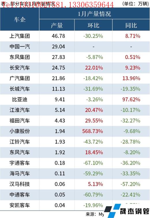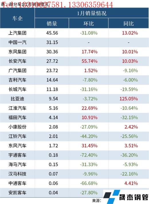 免責聲明:本網(wǎng)站(山東聊城晟杰無縫鋼管廠m.abagaf.com)刊載的“1月我國汽車產(chǎn)銷降幅明顯,多數(shù)車企呈現(xiàn)雙位數(shù)下跌”等均源于網(wǎng)絡,版權(quán)歸原作者所有,且僅代表原作者觀點,本文所載信息僅供參考。轉(zhuǎn)載僅為學習與交流之目的,如無意中侵犯您的合法權(quán)益,請及時聯(lián)系刪除。本網(wǎng)站刊登此篇文章并不意味著本站贊同其觀點或證實其內(nèi)容的真實性,我們不對其科學性、嚴肅性等作任何形式的保證。如果侵犯了您的版權(quán),請盡快聯(lián)系我們予以撤銷,謝謝合作!