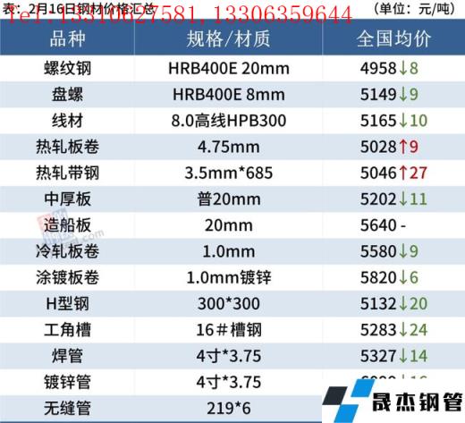 建筑厚壁無縫鋼管:2月16日,全國31個主要城市20mm三級抗震螺紋鋼均價4958元/噸,較上個交易日跌8元/噸。短期來看,隨著原料價格的走弱,需求持續(xù)低迷,市場悲觀情緒漸濃,貿(mào)易商低價套現(xiàn)操作較為普遍。元宵之后下游工地存在一定復工預期,但未來幾日又將持續(xù)雨水天氣,需求釋放力度仍有待考證,預計17日國內(nèi)建筑厚壁無縫鋼管價格或?qū)⒅沟蠓€(wěn)。