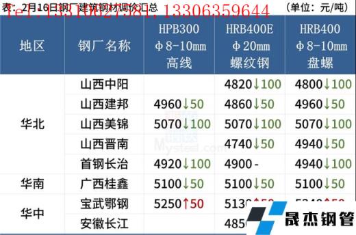 2月16日,國內(nèi)厚壁無縫鋼管市場偏弱為主,唐山鋼坯出廠價格穩(wěn)報4650元/噸。市場心態(tài)有所好轉(zhuǎn),詢單增多,投機需求小幅釋放,低價成交好轉(zhuǎn)。