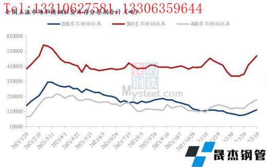 節(jié)后市場(chǎng)復(fù)工及時(shí),需求恢復(fù)也比較樂(lè)觀;加之雖然庫(kù)存雖然出現(xiàn)明顯增加,但民營(yíng)無(wú)縫厚壁鋼管廠家資源并不十分充裕,部分熱軋還存在規(guī)格缺貨現(xiàn)象,貿(mào)易商手中庫(kù)存并不算高,多集中在無(wú)縫厚壁鋼管廠家前置及代理商倉(cāng)庫(kù)。據(jù)調(diào)研,2022年2月10日全國(guó)主流市場(chǎng)不銹鋼社會(huì)庫(kù)存總量79.04萬(wàn)噸,較上期(1月27日)增加18%;其中300系不銹鋼庫(kù)存總量47.95萬(wàn)噸,較上期增14.83%。