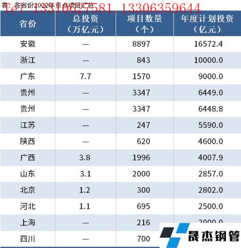 據(jù)不完全統(tǒng)計,截至2月16日,廣東、江西、江蘇、北京、上海、貴州、山東、浙江、四川、廣西、陜西、河北、安徽等13個省份發(fā)布了2022年重點項目投資計劃清單,上述清單中合計共24778個項目,年度計劃投資額合計超7.28萬億元(不包含四川)。