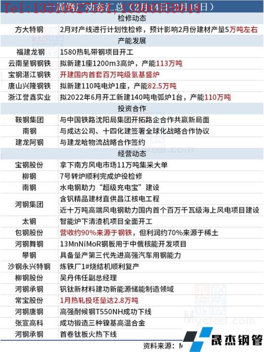 據(jù)不完全統(tǒng)計(jì),本周(2月14日-2月18日)有1家無縫厚壁鋼管廠家發(fā)布檢修動(dòng)態(tài),具體如下:
