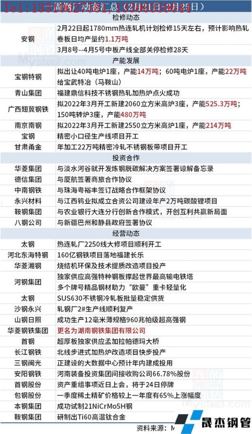 據(jù)不完全統(tǒng)計,本周(2月21日-2月25日)有1家無縫厚壁鋼管廠家發(fā)布檢修動態(tài),具體如下: