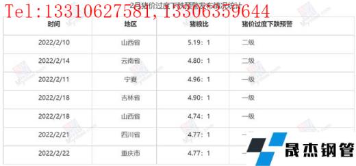 2022年1月國內(nèi)豬價(jià)持續(xù)走低,月內(nèi)跌幅12%以上。春節(jié)過后,國家發(fā)改委18日發(fā)布豬價(jià)過度下跌二級(jí)預(yù)期,將“視情啟動(dòng)豬肉儲(chǔ)備收儲(chǔ)工作”。隨后國內(nèi)一些省份陸續(xù)發(fā)布豬價(jià)過度下跌預(yù)警。截至22日,包括寧夏、吉林、山西、四川、重慶等地發(fā)布一級(jí)預(yù)警,計(jì)劃啟動(dòng)豬肉收儲(chǔ)等。