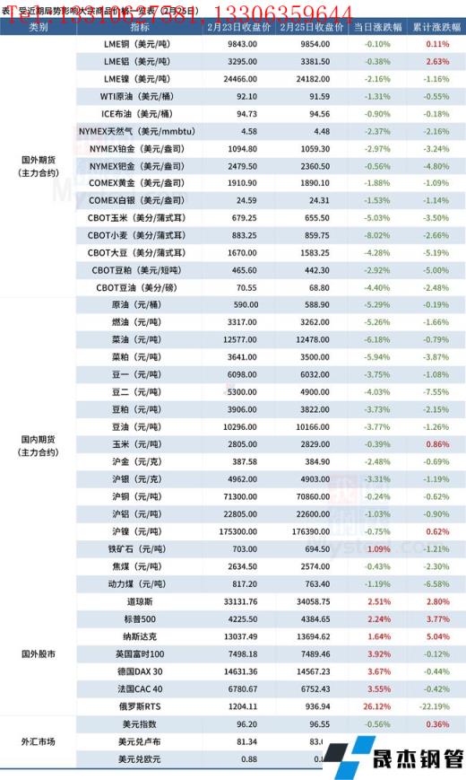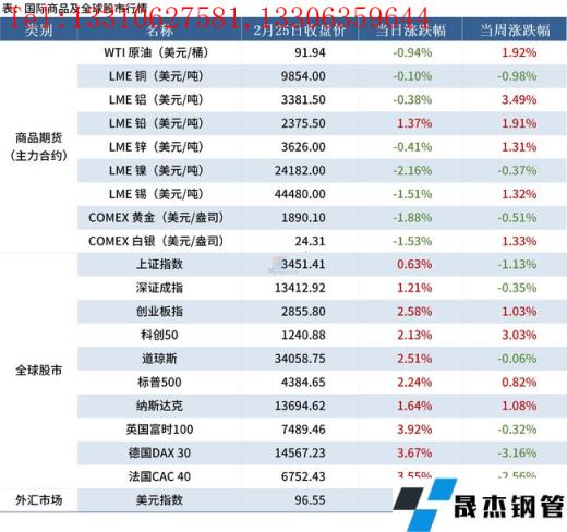 當(dāng)周,商品期貨方面,銅、鎳、黃金價(jià)格略微下跌,其余品種價(jià)格均上漲。其中,鋁價(jià)格漲幅最高,達(dá)3.49%。全球股市方面,各股市漲跌不一。其中,中國(guó)科創(chuàng)50漲幅最高,達(dá)3.03%;
