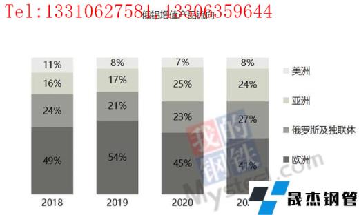 俄鋁公開報告顯示,俄鋁增值產(chǎn)品(加工產(chǎn)品)主要流向為歐洲、俄羅斯及獨聯(lián)體、亞洲及美洲。其中歐洲為主要出口市場,2021年發(fā)往歐洲的增值產(chǎn)品量占總量的41%。自2018年美國制裁俄鋁事件發(fā)生后,俄鋁的出口流向有所調(diào)整,其中亞洲比重逐漸上升。