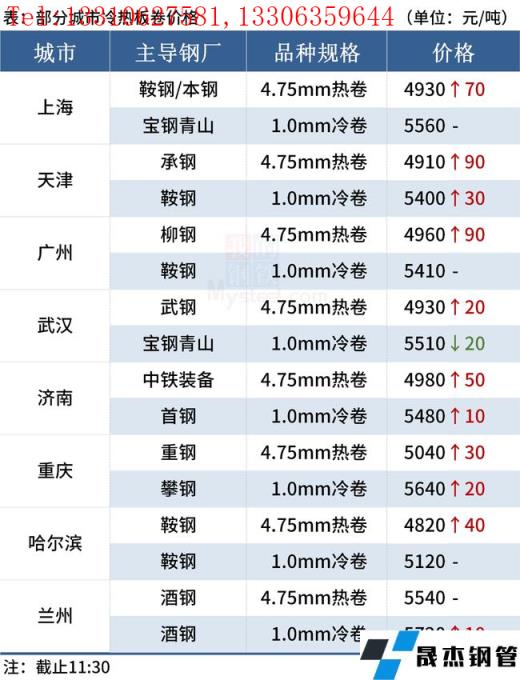 ◎上海:28日早盤熱卷市場價(jià)格漲70,現(xiàn)主流報(bào)價(jià)1500普4910-4930元/噸,1800報(bào)5020-5030元/噸;1500錳5070元/噸,1800報(bào)5130元/噸左右,2.75Q235B報(bào)5040-5070元/噸,2.75SPHC報(bào)5070元/噸左右。(單位:元/噸)