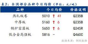 今日全國部分品種均價(jià)回升,整體漲幅為6~41元/噸。