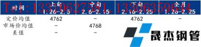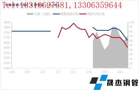 冬儲(chǔ)期間,也就是2月上旬與中旬FDTG建材南昌市場(chǎng)采取保價(jià)政策,即1月26日至2月5日無(wú)縫厚壁鋼管廠家定價(jià)為2月16日至2月25日這旬日定價(jià)均值,2月6日至2月15日無(wú)縫厚壁鋼管廠家定價(jià)為2月26日至3月7日期間日定價(jià)均值,當(dāng)前2月上旬與下旬的無(wú)縫厚壁鋼管廠家定價(jià)已出,中旬定價(jià)還未出。南昌市場(chǎng)FDTG螺紋鋼成交價(jià)與無(wú)縫厚壁鋼管廠家每日定價(jià)差值,如下表所示。