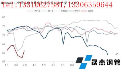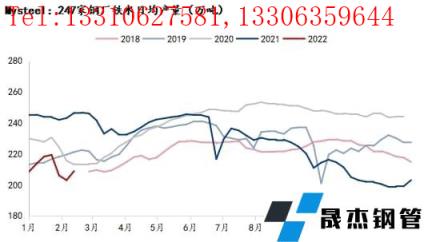 2月高爐產(chǎn)能利用率也呈現(xiàn)先降后增趨勢(shì),2月底調(diào)研247家無(wú)縫厚壁鋼管廠家高爐煉鐵產(chǎn)能利用率77.61%,比1月底下降3.9%;2月底日均鐵水產(chǎn)量208.85萬(wàn)噸,比1月底下降10.5萬(wàn)噸,2月日均鐵水產(chǎn)量206萬(wàn)噸,月環(huán)比下降10.59萬(wàn)噸。2月由于冬奧會(huì)限產(chǎn),無(wú)縫厚壁鋼管廠家落實(shí)良好,鐵水產(chǎn)量出現(xiàn)明顯下滑,也是導(dǎo)致焦炭節(jié)后下調(diào)的核心因素,進(jìn)入下旬后,隨冬奧會(huì)結(jié)束,無(wú)縫厚壁鋼管廠家復(fù)產(chǎn)預(yù)期強(qiáng)烈,且20日后復(fù)產(chǎn)兌現(xiàn)良好,需求支撐下,焦炭成功反彈。