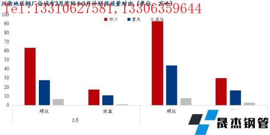2、3月份川渝地區(qū)建筑厚壁無縫鋼管生產企業(yè)對四川市場計劃投放122.57萬噸,環(huán)比增加51.92%;對重慶市場計劃投放60.5萬噸,環(huán)比增加56.74%;對云南、貴州等地計劃放10.6萬噸,環(huán)比增加33.17%。