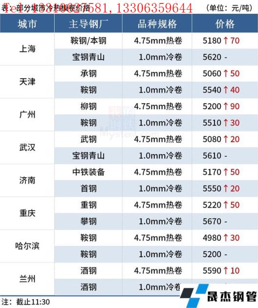 ◎上海:3日早盤熱卷市場價(jià)格漲70,現(xiàn)主流報(bào)價(jià)1500普5160-5180元/噸,1800報(bào)5270-5280元/噸;1500錳5320元/噸,1800報(bào)5420元/噸左右,2.75Q235B報(bào)5290-5320元/噸,2.75SPHC報(bào)5340元/噸左右。(單位:元/噸)