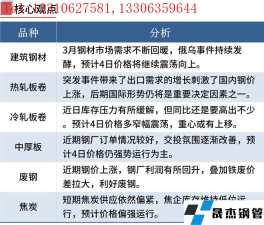熱軋板卷:3月3日,全國24個(gè)主要城市4.75mm熱軋板卷均價(jià)5177元/噸,較上個(gè)交易日上漲57元/噸。近期的上漲主要邏輯源自于國際局勢變幻后帶來的影響及相應(yīng)制裁,導(dǎo)致國際厚壁無縫鋼管買家將訂單及采購目光投向中國、日本、韓國及一些東南亞國家,突發(fā)事件帶來了出口需求的增長刺激了國內(nèi)厚壁無縫鋼管價(jià)格的上漲,而近期的盤面拉漲迅速,也使上漲初期進(jìn)場的正套單基本都沒套住,期現(xiàn)雙殺高位難以解套,而后期價(jià)格是否仍能維持,國際形勢仍將是重要決定因素之一。綜合來看,預(yù)計(jì)4日價(jià)格仍將維持高位震蕩為主。