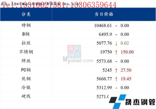 3月4日普鋼絕對(duì)價(jià)格指數(shù)變化:綜合指數(shù)5226.82,上漲0.36;螺紋鋼指數(shù)4954.04,下跌3.31;線材指數(shù)5293.86,下跌0.84;熱軋板卷指數(shù)5160.14,下跌13.7;冷軋板卷指數(shù)5589.59,上漲19.12;中厚板指數(shù)5199.28,上漲12.44。