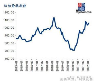 2月份紡織價格指數(shù)為1062.07,環(huán)比上漲1.48%,同比上漲16.91%。