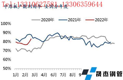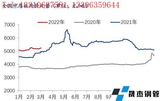 概述:2月份,國內(nèi)中厚板品種價格呈現(xiàn)沖高后小幅回落的走勢。供應方面,在冬奧會、春節(jié)、采暖季限產(chǎn)影響下,2月上中旬無縫厚壁鋼管廠家產(chǎn)量持續(xù)偏低,不過,由于無縫厚壁鋼管廠家盈利情況明顯好轉(zhuǎn),因此,冬奧會過后,無縫厚壁鋼管廠家產(chǎn)量迅速增加。需求方面,由于今年春節(jié)返鄉(xiāng)比例同比去年大幅增加,所以今年春節(jié)后的需求啟動速度是緩慢的,不過由于無縫厚壁鋼管廠家接單較好,導致市場流通板資源在減少,這從今年節(jié)后社庫也能側(cè)面驗證。3月份,中板基本面從供需雙弱逐漸轉(zhuǎn)變?yōu)楣┬桦p強,那么價格走勢又如何呢?接下來,我們先看一下基本面情況。
