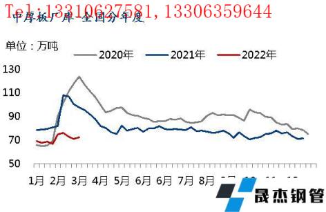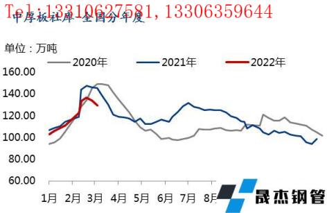 另一方面,21年四季度末無縫厚壁鋼管廠家品種鋼訂單轉(zhuǎn)好,很多無縫厚壁鋼管廠家對內(nèi)部品種結(jié)構進行了調(diào)整,以減少流通材,增加直供量為主,這一點也從我們節(jié)前一些品種鋼價格漲幅也能看出,包括橋梁板、高建鋼,Q355C, Q355D板等等,這些品種節(jié)前價格漲幅均高于普板和低合金板。所以進一步導致市場流通材的量在減少,這一點,也可以從我們今年春節(jié)后的社會庫存能夠得到驗證。今年春節(jié)后的中板社會庫存大幅低于去年同期,還有一方面原因是,今年大家冬儲的意愿非常低,投機性訂貨量較去年有明顯下降,多以協(xié)議量到貨為主。