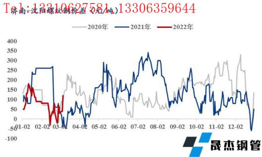 2月螺紋北京-沈陽月均價差+42元/噸,廣州-沈陽月均價差+33元/噸,上海-沈陽月均價差-89元/噸,濟(jì)南-沈陽月均價差+40元/噸。雖然本地尚未全面啟動,但本地?zé)o縫厚壁鋼管廠家跟漲節(jié)奏較快,帶動市場報價整體上漲,即東北價格繼續(xù)處在較高水平,南北無合適的價差已經(jīng)成為常態(tài)。