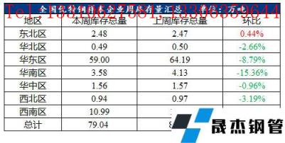 1、據(jù)對全國29個城市的貿易商跟蹤,現(xiàn)全國優(yōu)特鋼棒材樣本總庫存79.04萬噸,環(huán)比下降6.08萬噸,降幅7.14%,同比下降12.73萬噸,降幅13.87%。