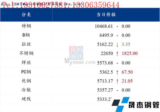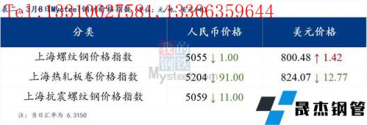 3月8日普鋼絕對(duì)價(jià)格指數(shù)變化:綜合指數(shù)5305.16,下跌18.78;螺紋鋼指數(shù)5036.67,下跌14.09;線材指數(shù)5371.79,下跌9.76;熱軋板卷指數(shù)5245.35,下跌44.87;冷軋板卷指數(shù)5664.11,下跌27.59;中厚板指數(shù)5263.85,下跌11.41。