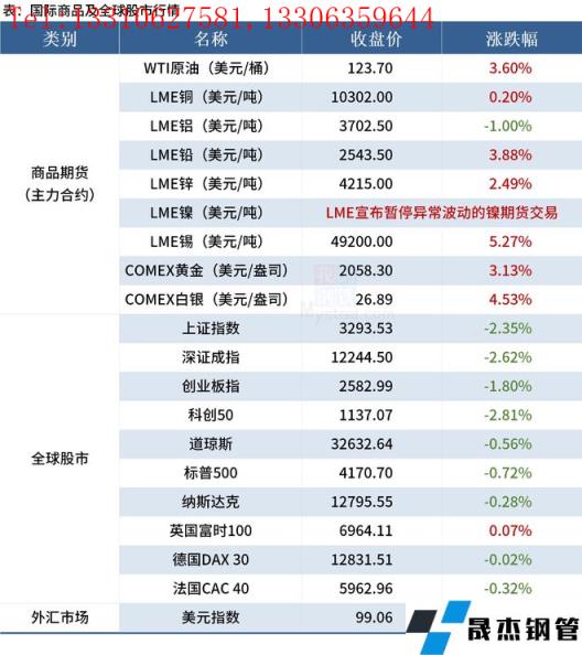 免責聲明:本網(wǎng)站(山東聊城晟杰無縫鋼管廠m.abagaf.com)刊載的“2022年03月09日早讀:LME緊急切斷鎳期貨交易,美宣布禁止進口俄羅斯石油”等均源于網(wǎng)絡(luò),版權(quán)歸原作者所有,且僅代表原作者觀點,本文所載信息僅供參考。轉(zhuǎn)載僅為學習與交流之目的,如無意中侵犯您的合法權(quán)益,請及時聯(lián)系刪除。本網(wǎng)站刊登此篇文章并不意味著本站贊同其觀點或證實其內(nèi)容的真實性,我們不對其科學性、嚴肅性等作任何形式的保證。如果侵犯了您的版權(quán),請盡快聯(lián)系我們予以撤銷,謝謝合作!