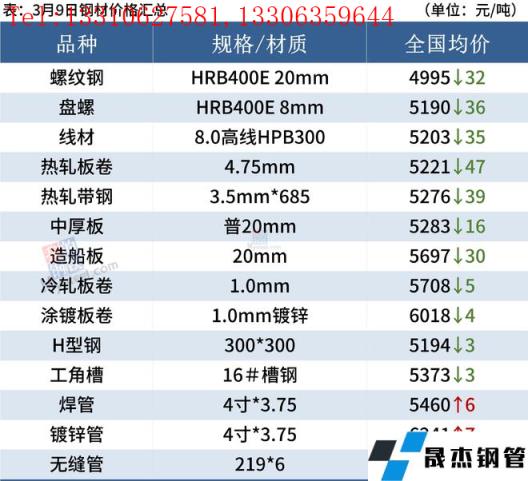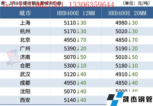 建筑厚壁無縫鋼管:3月9日,全國31個主要城市20mm三級抗震螺紋鋼均價4995元/噸,較上個交易日跌32元/噸。綜合來看,需求方面,目前下游工程項目資金情況尚未有明顯好轉(zhuǎn),采購剛需為主,市場投機(jī)情緒降溫后,整體成交表現(xiàn)較為一般。而期貨市場的波動影響市場心態(tài),因此預(yù)計10日國內(nèi)建筑厚壁無縫鋼管價格將繼續(xù)弱勢震蕩運(yùn)行。