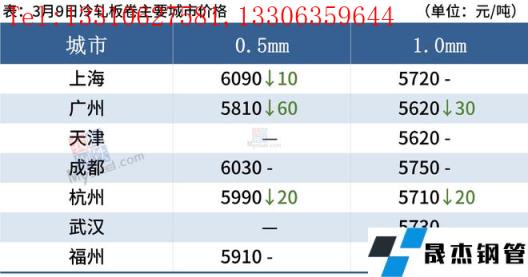 冷軋板卷:3月9日,全國24個主要城市1.0mm冷卷均價5708元/噸,較上個交易日下跌5元/噸。隨著黑色系震蕩走弱,市場價格步入下行通道,廣州、南昌、杭州等地率先下調(diào)價格,其余市場則多暗降出貨。下游“買漲不買跌”心態(tài)明顯,多持觀望態(tài)度,謹(jǐn)慎拿貨。綜合來看,故預(yù)計10日國內(nèi)冷軋板卷價格或?qū)⒗^續(xù)偏弱運(yùn)行。