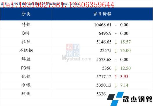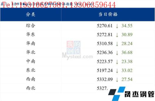 3月9日普鋼絕對價格指數(shù)變化:綜合指數(shù)5270.61,下跌34.55;螺紋鋼指數(shù)5005.67,下跌31.0;線材指數(shù)5342.07,下跌29.72;熱軋板卷指數(shù)5181.27,下跌64.08;冷軋板卷指數(shù)5638.63,下跌25.48;中厚板指數(shù)5242.43,下跌21.42。