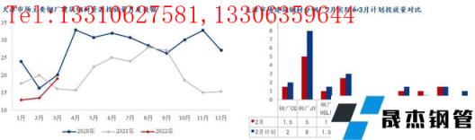 3月無縫厚壁鋼管廠家對京津冀區(qū)域投放量環(huán)比增加41.3萬噸,同比增加13.15萬噸。進入3月份,京津冀無縫厚壁鋼管廠家復(fù)產(chǎn)加速,整體投放量明顯上升。到貨方面以火運為主,受公共衛(wèi)生事件影響,火運到貨不穩(wěn)定,具體來看:1、河鋼承鋼兩螺一線在產(chǎn),對京津冀投放量2月份19.5萬噸,2月份增加至26.5萬噸;2、河鋼樂鋼一條螺紋產(chǎn)線在產(chǎn),計劃本月再復(fù)產(chǎn)一條,對京津冀投放增加,2月份整體9萬噸,3月份計劃增加至14.5萬噸;3、敬業(yè)無縫厚壁鋼管廠家4條螺紋產(chǎn)線在產(chǎn),加上烏鋼資源流入,對京津冀投放量環(huán)比增加19萬噸;4、本月中旬,東華無縫厚壁鋼管廠家螺紋產(chǎn)線計劃復(fù)產(chǎn);5、鑫達一條螺紋產(chǎn)線不飽和生產(chǎn),2月京津冀僅投放5萬,3月份計劃投放9萬噸;5、東北西北材新?lián)徜?、海鑫、西林?月份對北京市場合計投放5.3萬噸左右,2月份計劃5.5萬噸。
