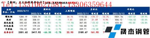 庫存方面,五大品種厚壁無縫鋼管總庫存春節(jié)后連續(xù)首次全面去化,環(huán)比上周減少66.3萬噸,降幅2.7%。分品種看,建材庫存減少42.96萬噸,降幅為2.6%;板材庫存減少23.34萬噸,降幅3.2%;分指標看,五大品種無縫厚壁鋼管廠家?guī)齑姝h(huán)比減少39.26萬噸,降幅6.2%;五大品種社會庫存環(huán)比減少27.04萬噸,降幅1.5%。
