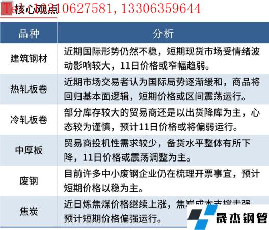 冷軋板卷:3月10日,全國24個(gè)主要城市1.0mm冷卷均價(jià)5677元/噸,較上個(gè)交易日下跌31元/噸。隨著期貨盤面連續(xù)下跌,價(jià)格也隨之下調(diào),市場(chǎng)交投氛圍明顯冷清,今日整體成交一般。心態(tài)方面,部分庫存較大的貿(mào)易商還是以出貨降庫為主,心態(tài)較為謹(jǐn)慎。庫存方面,據(jù)不完全統(tǒng)計(jì),現(xiàn)冷軋無縫厚壁鋼管廠家?guī)齑?4.57萬噸,周環(huán)比減少2.23萬噸,社會(huì)庫存143.40萬噸,周環(huán)比增加0.97萬噸,周消費(fèi)量80.22萬噸,環(huán)比減少2.64萬噸。綜合來看,故預(yù)計(jì)11日國內(nèi)冷軋板卷價(jià)格或?qū)⑵踹\(yùn)行。