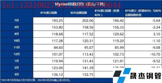 近期,鐵礦石遠(yuǎn)期現(xiàn)貨市場和港口現(xiàn)貨市場存在明顯的價(jià)格倒掛現(xiàn)象,許多市場參與者也開始更多關(guān)注港口現(xiàn)貨價(jià)格指數(shù),鐵礦石指數(shù)部最近也接到多家無縫厚壁鋼管廠家和貿(mào)易商詢問61%港口指數(shù)的一些基本情況,以及其與目前礦山定價(jià)使用的62%澳粉遠(yuǎn)期現(xiàn)貨價(jià)格指數(shù)(以下簡稱“62%遠(yuǎn)期指數(shù)”)的差異。