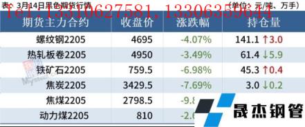 熱軋板卷:3月14日,全國(guó)24個(gè)主要城市4.75mm熱軋板卷均價(jià)5118元/噸,較上個(gè)交易日下跌53元/噸。黑色商品期貨市場(chǎng)大幅下挫,下游采購(gòu)量觀望,商家心態(tài)悲觀,全天成交清淡。綜合來(lái)看,當(dāng)前疫情呈現(xiàn)復(fù)發(fā),剛需釋放有限,商家預(yù)期迷茫。短期鋼價(jià)震蕩運(yùn)行,既因?yàn)榍榫w受到期貨市場(chǎng)的引導(dǎo),又因?yàn)樾枨鬀](méi)有放量的跡象,而無(wú)縫厚壁鋼管廠家起到"托舉"的作用。綜合來(lái)看,預(yù)計(jì)15日熱軋板卷價(jià)格或震蕩下行為主。
