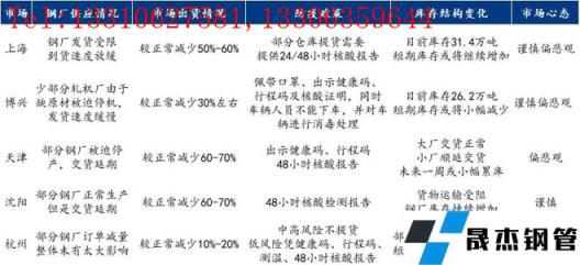 天津市場(chǎng):近期疫情肆起,天津昨日新增本土病例51例,涉及區(qū)域偏多,范圍偏廣,部分無縫厚壁鋼管廠家被迫停產(chǎn),交貨延期。各地交通受阻,據(jù)客戶反饋,運(yùn)費(fèi)上漲幅度在20%左右。當(dāng)?shù)卣叻矫妫糠到蛉藛T實(shí)行查驗(yàn)“一證一碼一卡”政策,即對(duì)來返津人員在鐵路、機(jī)場(chǎng)、道路客運(yùn)場(chǎng)站和公路通道卡口查驗(yàn)48小時(shí)核酸陰性證明、健康碼綠碼和通信行程卡。庫存方面,目前大廠交貨正常,商家到庫資源在6-8成左右,小廠由于疫情資源無法正常交貨,只能順延交貨。貿(mào)易商反饋疫情期間成交乏力,預(yù)計(jì)未來一周會(huì)出現(xiàn)小幅累庫的現(xiàn)象。心態(tài)方面,由于近期疫情擴(kuò)散較嚴(yán)重,且市場(chǎng)成交持續(xù)處于正常偏低水平,商家心態(tài)逐漸偏悲觀。