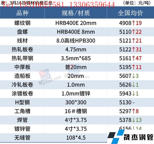 建筑厚壁無縫鋼管:3月16日,全國31個(gè)主要城市20mm三級抗震螺紋鋼均價(jià)4908元/噸,較上個(gè)交易日漲19元/噸。短期來看,在宏觀消息刺激下,市場悲觀情緒明顯修復(fù),或?qū)?dòng)現(xiàn)貨市場迎來反彈,至于反彈高度,仍需關(guān)注后期供需面變化,如北方地區(qū)近期高爐集中復(fù)產(chǎn)以及疫情對于需求端的影響。因此預(yù)期17日國內(nèi)建筑厚壁無縫鋼管價(jià)格或?qū)⒗^續(xù)趨強(qiáng)運(yùn)行為主。