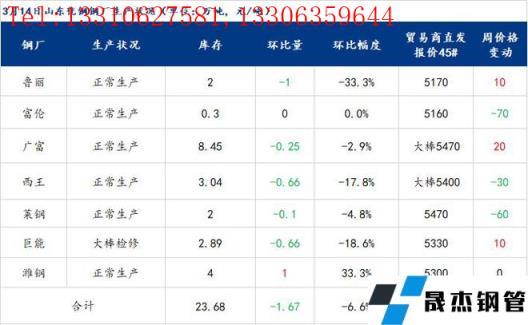 數(shù)據(jù):山東優(yōu)特?zé)o縫厚壁鋼管廠家?guī)齑?3.68萬噸,環(huán)比下降1.67萬噸,減少6.59%,同比下降0.41萬噸,降幅1.7%。